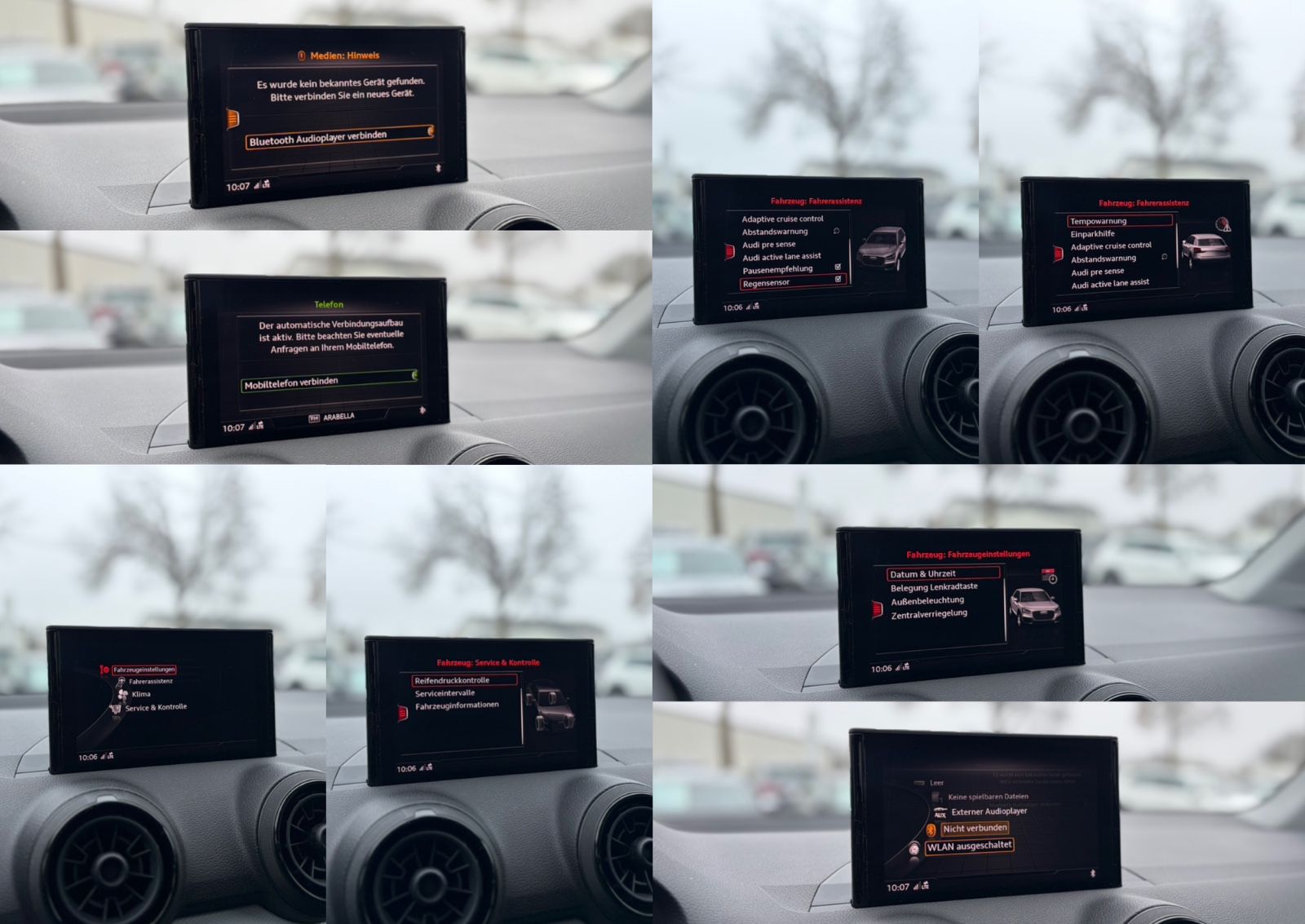 • Audi connect (Internetbasierende Dienste), Fahrassistenz-System: Autom. Distanzregelung (Adaptive Cruise Control) inkl. Audi pre sense front, Fahrer-Informations-System (FIS) mit Farbdisplay, Innenlicht-Paket LED, Innenspiegel mit Abblendautomatik, Komfort-Klimaautomatik 2-Zonen, Lendenwirbelstützen vorn, elektr. verstellbar, Lenkrad (Sport/Leder - 3-Speichen, unten abgeflacht) mit Multifunktion und Schaltfunktion, Licht-Paket, LM-Felgen 7x17 (7-Speichen), Multi-Media-Interface MMI Navigation, Panorama-Ausstelldach elektrisch, Sideblade in Wagenfarbe, Sitzheizung vorn